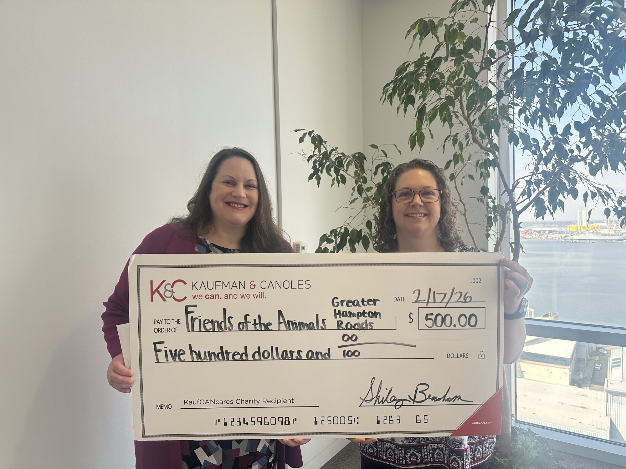 Friends of the Animals Greater Hampton Roads (Friends) was nominated by Andrea King, a Marketing Specialist in the firm’s Norfolk office. Founded by a coalition of local animal advocates – one of which includes the Firm’s own Member, Amy Harman – Friends is an all-volunteer, nonprofit organization that is dedicated to helping municipal animal shelters and municipal-contract animal shelters in the Greater Hampton Roads region. Friends works in collaboration with animal control officers and veterinary partners to assist animal shelters with medical care, adoption and transfer initiatives, and facilitating foster homes and temporary care for the animals in those shelters. This facilitation is often made possible through the organization’s assistance with medical and rehabilitation expenses so that the costs do not serve as a barrier to the animal being adopted or transferred to a rescue. This often includes necessary vaccinations, heartworm treatment, and providing financially accessible spay and neuter services to low-income families, which in turn reduces the population strain on local shelters. In addition to the organization’s spay and neuter assistance program, the organization has developed initiatives that directly address community needs, including limited emergency veterinary care for pet owners, partnerships that support adoption efforts, and educational outreach focused on treatment and preventive care. Through a deeply community-oriented approach, Friends is dedicated to its mission of reducing pet overpopulation, preventing unnecessary euthanasia, and ensuring that animals in the region receive humane, compassionate care. To donate, volunteer, or learn more, click here.